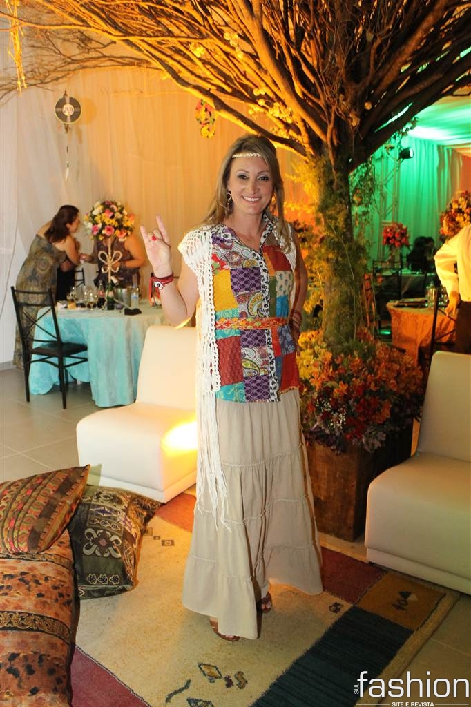 O clima hipster tomou conta da festa de 50 anos de Sandra Manenti. E para combinar com o tema, convidados fizeram bonito com looks no estilo anos 60/70. Saias longas, calças bocas de sino, headband, óculos redondos, batas, túnicas, vestidos de cigana, com muitas cores e estampas.