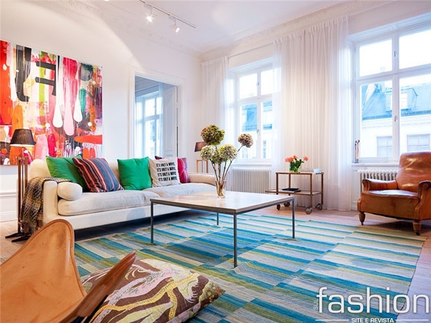 Numa sala, por exemplo o ideal é que o tapete tenha a mesmo tom do restante da decoração. Outra dica é que se a sua mesa é redonda, opte por um tapete quadrado, mas que tenha tamanho suficiente para puxar as cadeira ao sentar, sem arranhar o piso.