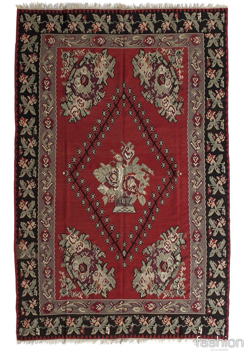 Kilim: Pode ser usado em salas ou quartos como elemento decorativo. É um tapete de textura forte e sem pelos. A confecção é feita com laçados por entre os fios da urdidura, quase como um bordado. No Ocidente, eles são conhecidos por seus desenhos gráficos e abstratos.