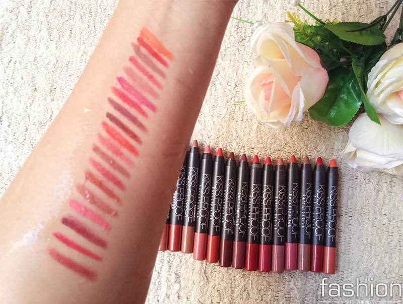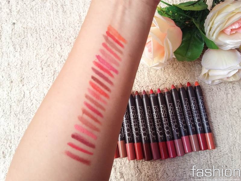 Os batons lápis Kiss Proof já estão fazendo um certo sucesso lá na gringa e algumas meninas do Brasil também se renderam aos encantos. A marca é famosa em sites de venda pelos preços ultra baixos (ó a bruxaria, gente) e por produzir linhas de produtos que não saem da boca, como gloss, batom líquido e a versão em lápis.