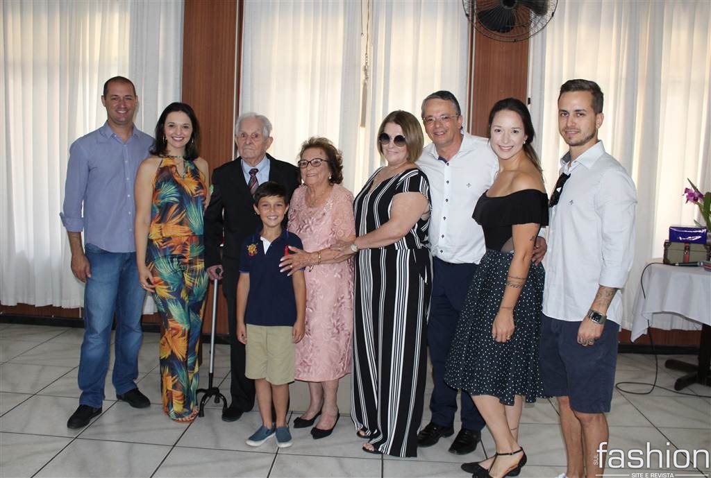 Com festa reservada para familiares e amigos, na tarde de sábado 15/12, os patriarcas da família Machado, Valkíria Estevam Machado e Dioclécio Machado celebraram as Bodas de Vinho. Antes da comemoração, marcada com almoço festivo, firmaram seus votos de amor numa celebração religiosa na capela do Colégio Murialdo, onde o Padre Vilcionei Baggio foi o escolhido para ministrar a cerimônia. Após, os convidados foram recepcionados no salão de festas do restaurante Espetão, na cidade de Araranguá, para onde amigos e famiares levaram seus abraços e votos de vida longa a esse casamento. O decor e as lembranças, assinado pela filha do casal, Denise Pazini Machado, professora de artes, apostou em decoração singela e romântica, estilo escolhido para homenagear os pais nessa data tão especial.