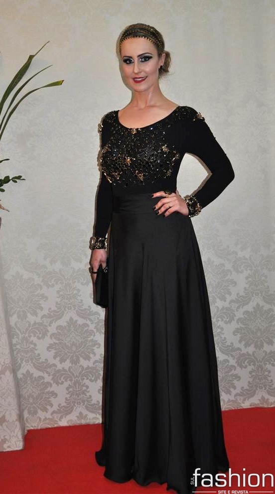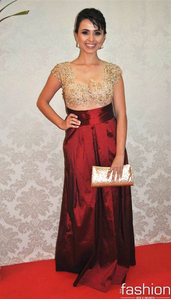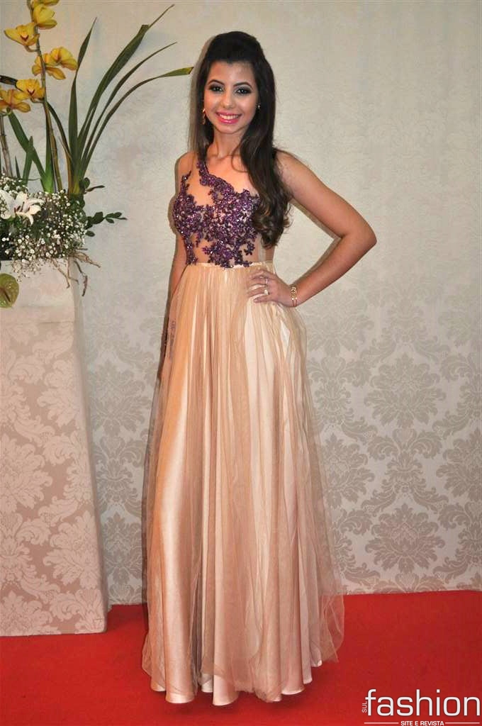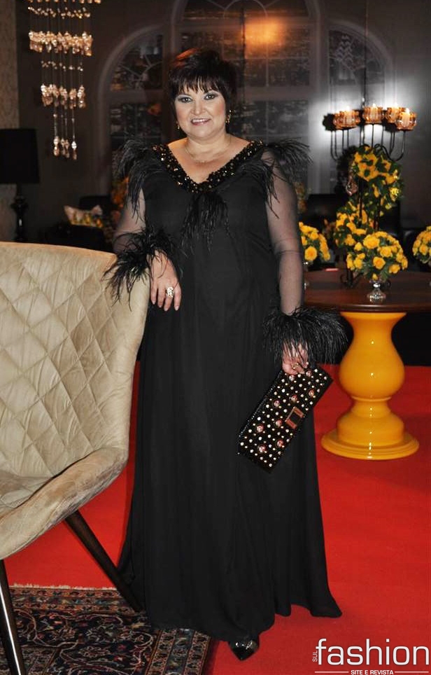 Inspirada nas tendências do mundo da moda e respeitando o estilo, a preferência e o biotipo de suas clientes, a estilista apostou nas plumas, bordados com pedrarias e transparências nos profundos decotes nas costas.